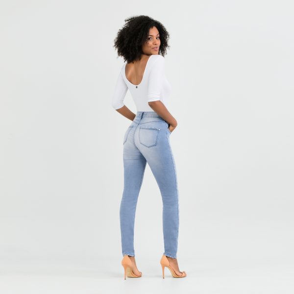 Descubra o conforto e a elegância com nossa calça de lavagem clara. Esta peça é projetada para proporcionar um ajuste perfeito, graças à sua modelagem skinny que valoriza a silhueta. O tecido jeans chapa barriga e a cintura alta oferecem suporte e conforto adicionais, garantindo um visual impecável. Os bolsos funcionais na frente e nas costas agregam praticidade ao design, tornando esta calça jeans ideal para o dia a dia. Perfeita para combinar com blusas tanto para ocasiões casuais quanto para eventos mais sofisticados, essa calça é um item essencial no guarda-roupa contemporâneo.