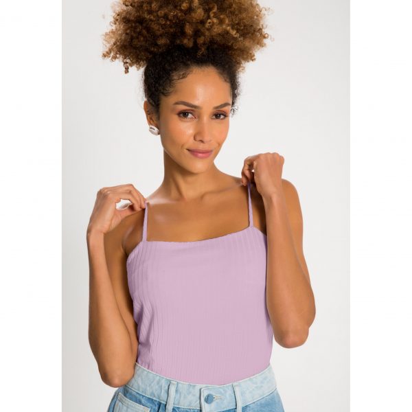 As alças finas adicionam um charme feminino e delicado, enquanto a cor lilás suave traz uma sensação de frescor e sofisticação. Ideal para compor looks versáteis, este cropped pode ser combinado com jeans, saias ou shorts, tornando-se um item essencial para qualquer ocasião, seja um passeio casual ou um evento especial.