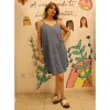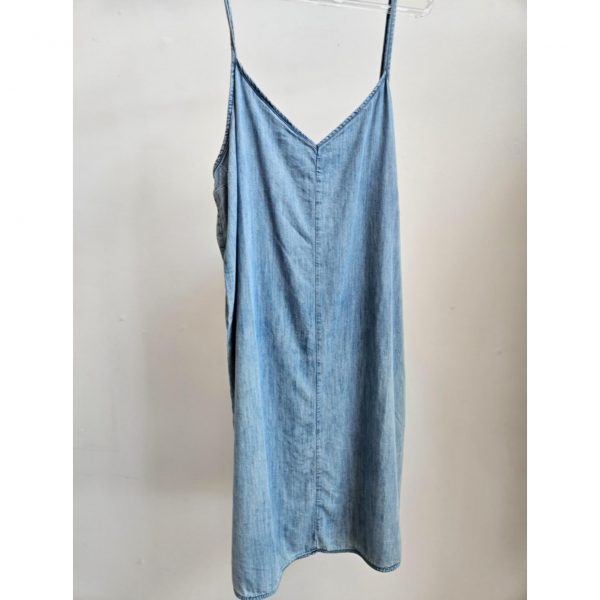 Com alças finas e um decote em V que realça a feminilidade, este vestido é a escolha perfeita para os dias quentes de verão. Produzido em tecido jeans claro, ele combina a robustez do denim com a leveza e o conforto que você procura em um look diário.